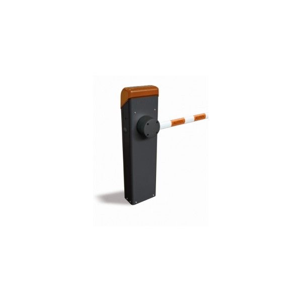 Barrière NICE irréversible 230 Vca, moteur 24 Vcc, lisse modulaire en 3 segments d'1m avec profils de protection en caoutchouc, fût en acier galvanisé et laqué