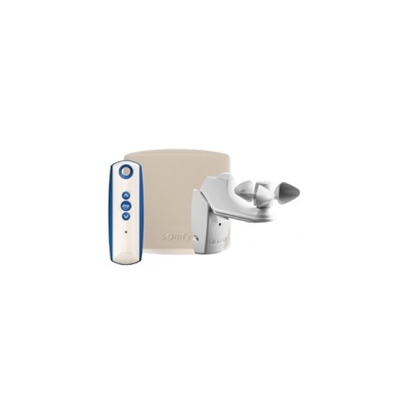 Ensemble SOMFY comprenant : - un récepteur universel RTS, - une télécommande TELIS 1 PATIO - un capteur vent EOLIS RTS Câblage simplifié. Compatible avec les commandes groupées (GR3 et GR4). Compatible avec les émetteurs SOMFY RTS. Protection du store contre le vent selon potentiomètre de réglage. Montage en extérieur à la place de la boîte de dérivation.